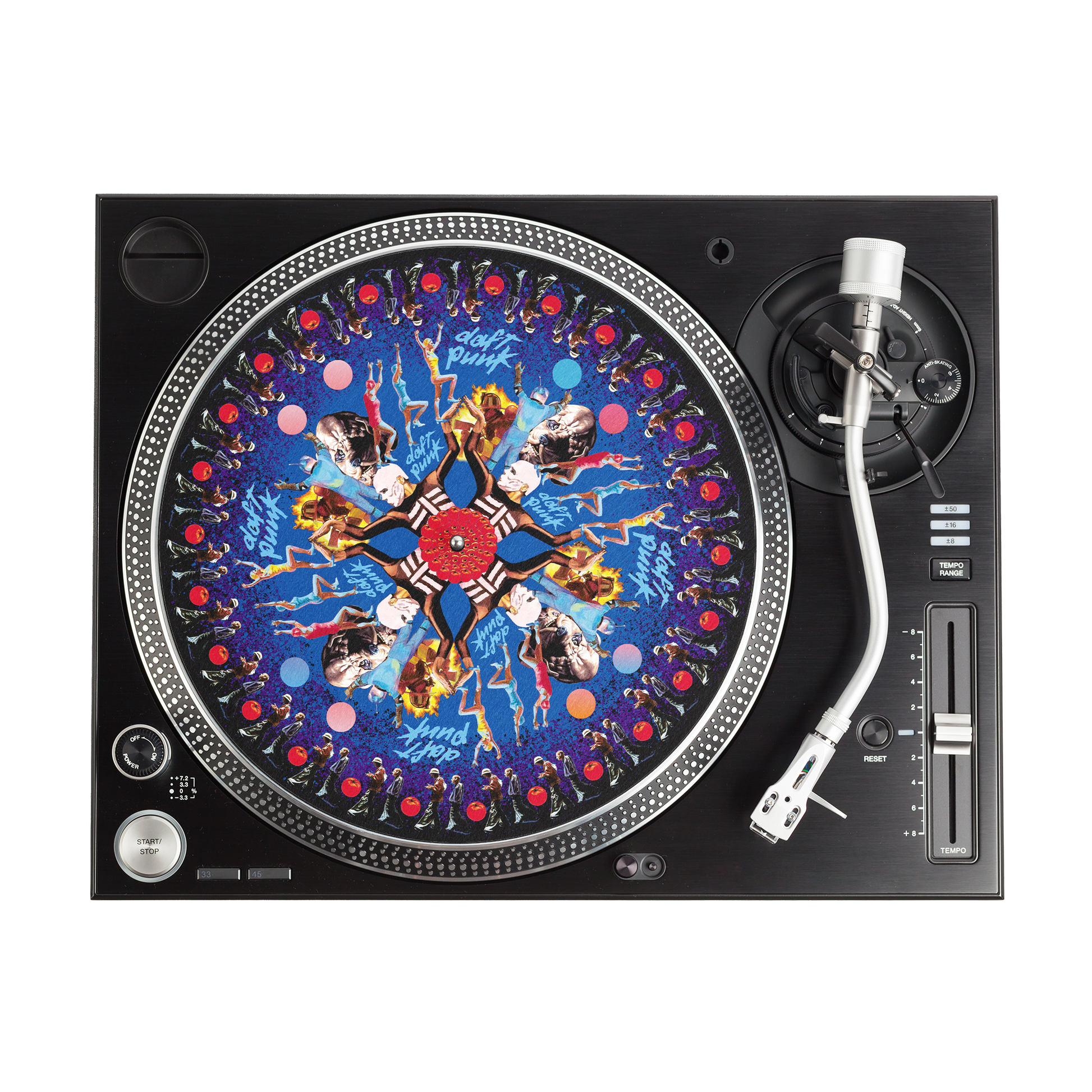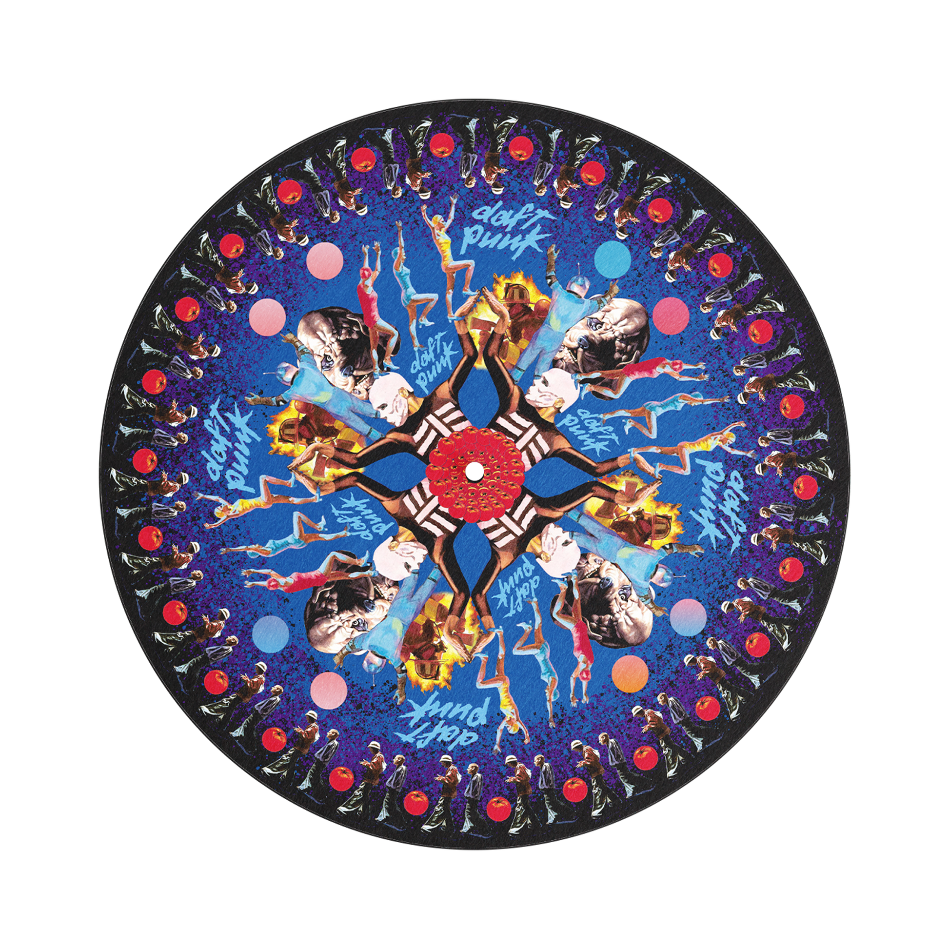 Daft Punk slipmat featuring vibrant zoetrope-esque design on 12" mat. Printed on one side.